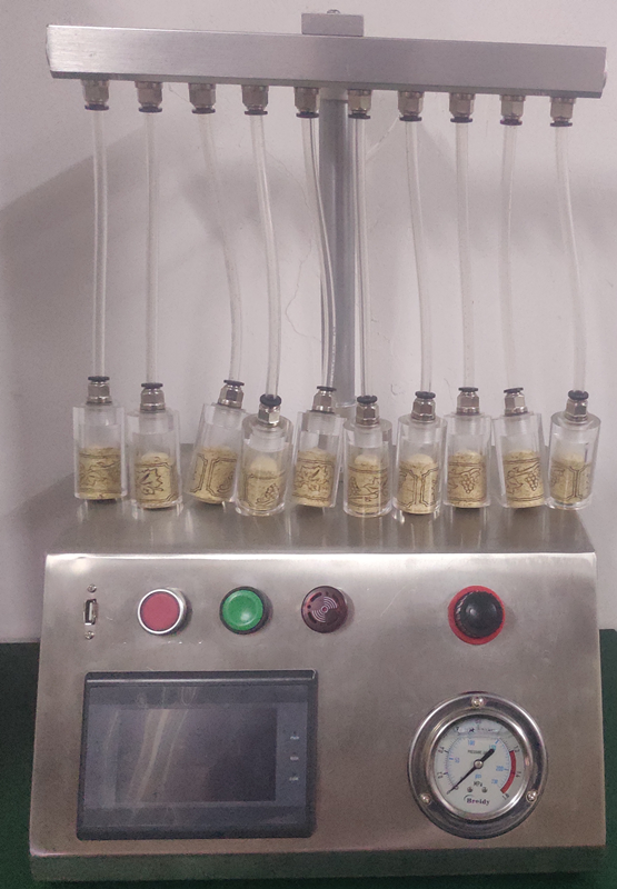 专业技术仪器采用PLC控制,性能稳定可靠,使用寿命长。可设定测试压力和保压时间,用户可随时终止测试。可一次同时测试多个软木塞,最多一次可测试10个。保压结束后系统自动泄压,提高了测试的安全性。 测试原理通过对玻璃标准…
